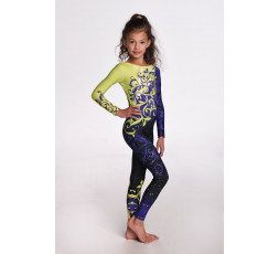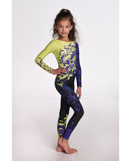 Kombinezonas ilgomis rankovėmis su dinamišku raštu puikiai papildys choreografiją varžybų ar treniruočių metu bei suteiks pasitikėjimo savimi ir nevaržys judesių.