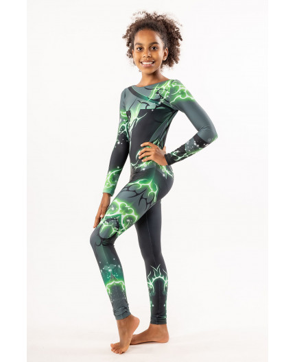Kombinezonas ilgomis rankovėmis su dinamišku raštu puikiai papildys choreografiją varžybų ar treniruočių metu bei suteiks pasitikėjimo savimi ir nevaržys judesių.