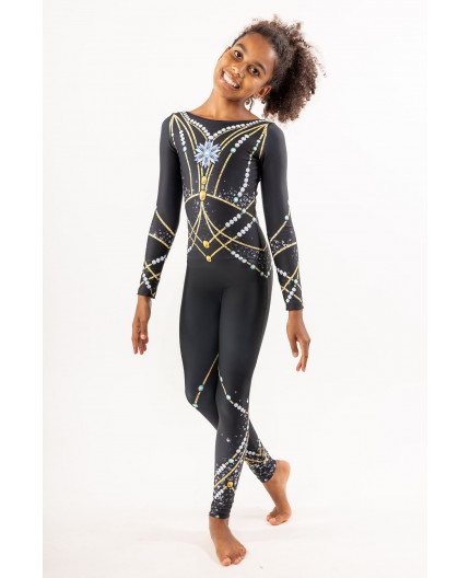 Kombinezonas ilgomis rankovėmis su dinamišku raštu puikiai papildys choreografiją varžybų ar treniruočių metu bei suteiks pasitikėjimo savimi ir nevaržys judesių.