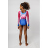 Gimnastikos triko ilgomis rankovėmis. Išskirtinis dizainas puikiai papildys choreografiją varžybų ar treniruočių metu, suteiks pasitikėjimo savimi bei nevaržys judesių.