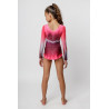 Gimnastikos triko ilgomis rankovėmis su sijonuku. Išskirtinis dizainas puikiai papildys choreografiją varžybų ar treniruočių metu, suteiks pasitikėjimo savimi bei nevaržys judesių.