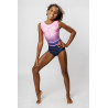 Gimnastikos triko be rankovių. Išskirtinis dizainas puikiai papildys choreografiją varžybų ar treniruočių metu, suteiks pasitikėjimo savimi bei nevaržys judesių.