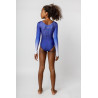Gimnastikos triko ilgomis rankovėmis. Išskirtinis dizainas puikiai papildys choreografiją varžybų ar treniruočių metu, suteiks pasitikėjimo savimi bei nevaržys judesių.