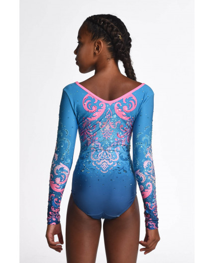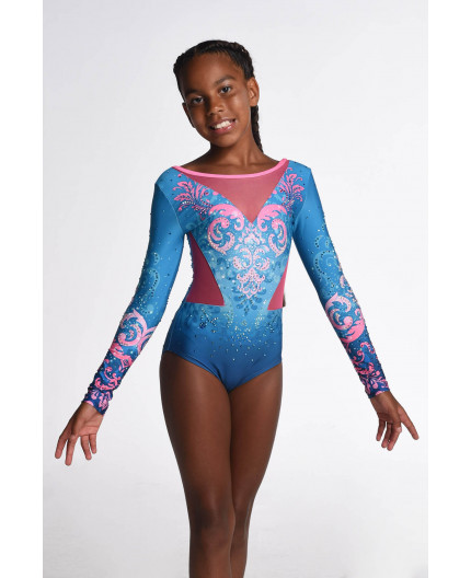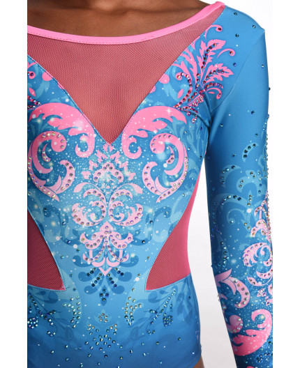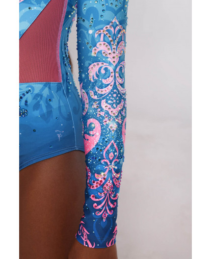 Gimnastikos triko ilgomis rankovėmis. Išskirtinis dizainas puikiai papildys choreografiją varžybų ar treniruočių metu, suteiks pasitikėjimo savimi bei nevaržys judesių.