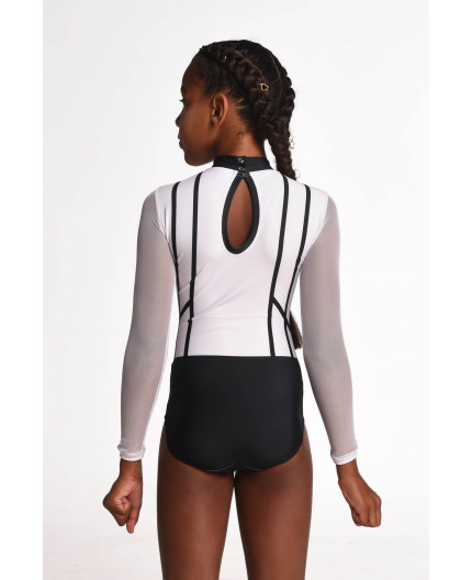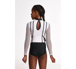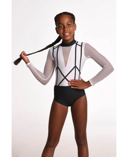 Gimnastikos triko ilgomis rankovėmis. Išskirtinis dizainas puikiai papildys choreografiją varžybų ar treniruočių metu, suteiks pasitikėjimo savimi bei nevaržys judesių.