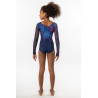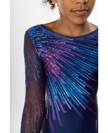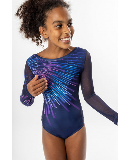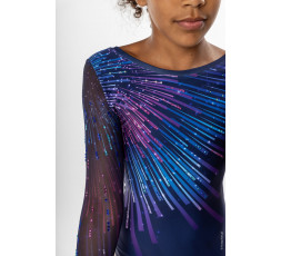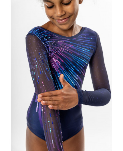 Gimnastikos triko ilgomis rankovėmis. Išskirtinis dizainas puikiai papildys choreografiją varžybų ar treniruočių metu, suteiks pasitikėjimo savimi bei nevaržys judesių.