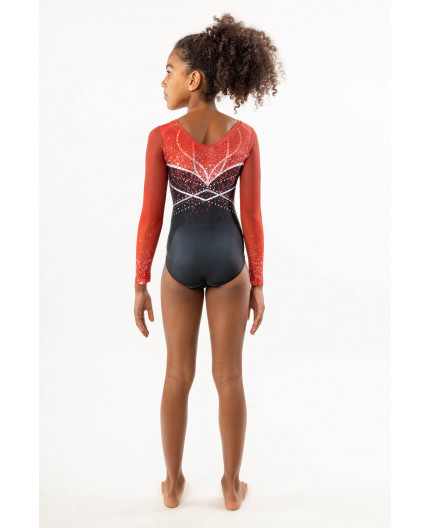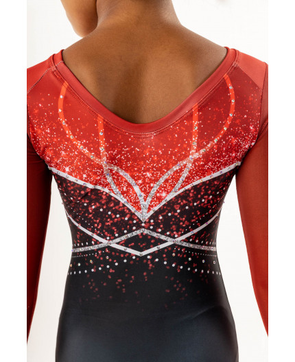 Gimnastikos triko ilgomis rankovėmis. Išskirtinis dizainas puikiai papildys choreografiją varžybų ar treniruočių metu, suteiks pasitikėjimo savimi bei nevaržys judesių.