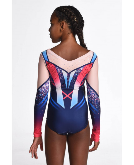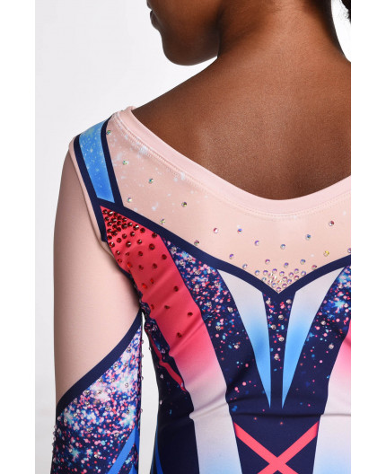 Gimnastikos triko ilgomis rankovėmis. Išskirtinis dizainas puikiai papildys choreografiją varžybų ar treniruočių metu, suteiks pasitikėjimo savimi bei nevaržys judesių.