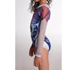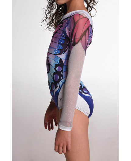 Gimnastikos triko ilgomis rankovėmis. Išskirtinis dizainas puikiai papildys choreografiją varžybų ar treniruočių metu, suteiks pasitikėjimo savimi bei nevaržys judesių.