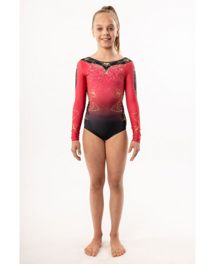 Gimnastikos triko ilgomis rankovėmis. Išskirtinis dizainas puikiai papildys choreografiją varžybų ar treniruočių metu, suteiks pasitikėjimo savimi bei nevaržys judesių.